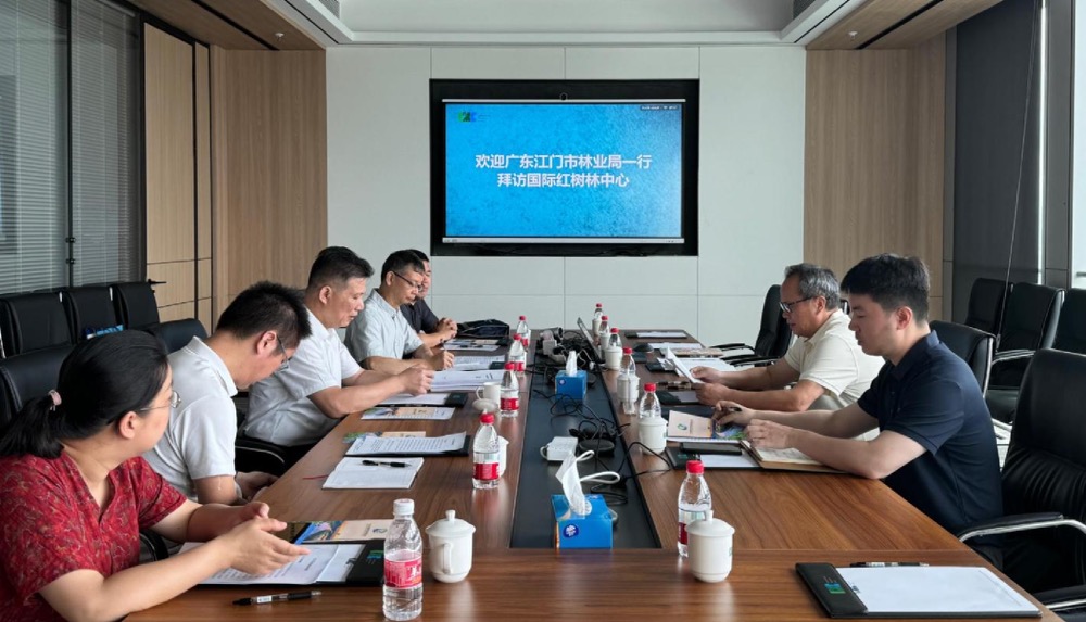 2025年5月9日上午,广东省江门市林业局一行到访国际红树林中心临时秘书处,围绕红树林生态系统保护、修复工程实践、海洋蓝碳交易及国际合作机制等展开深入交流。中心临时秘书处和江门市林业局相关代表参加了座谈。