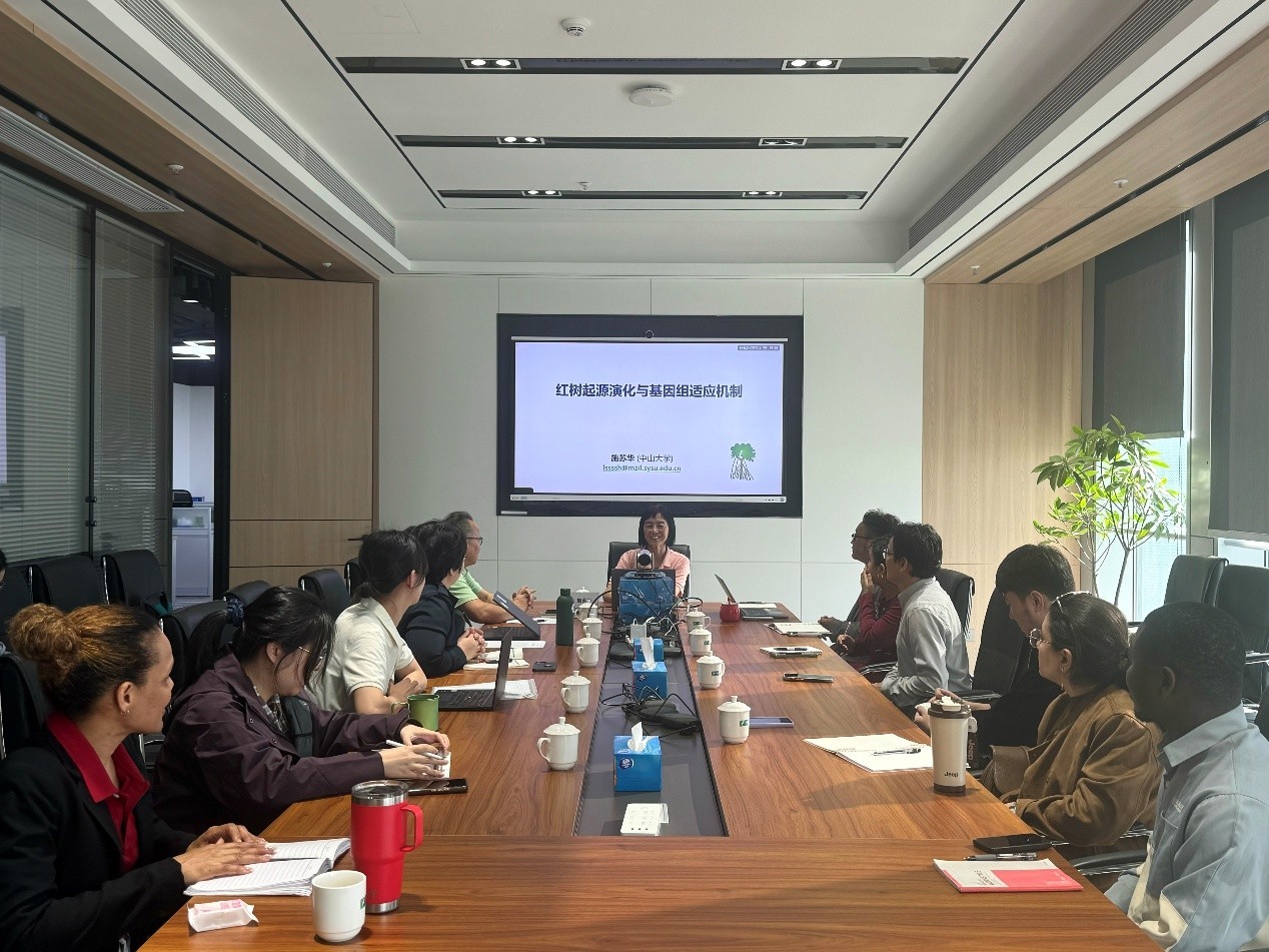 2025年12月18日,国际红树林中心(IMC)举办新一期国际红树林湿地大讲堂,邀请中山大学生命科学学院施苏华教授作专题授课,围绕红树林的演化历史、遗传结构及其在全球变化背景下面临的潜在风险,分享最新研究进展与科学认识。来自国家林草局相关单位、中国林科院、中国湿地保护协会相关单位、深圳市规划和自然资源局、广东内伶仃福田国家级自然保护区管理局、北京大学深圳研究生院、中山大学、深圳大学、红树林基金会及中心临时秘书处相关人员参加学习交流。