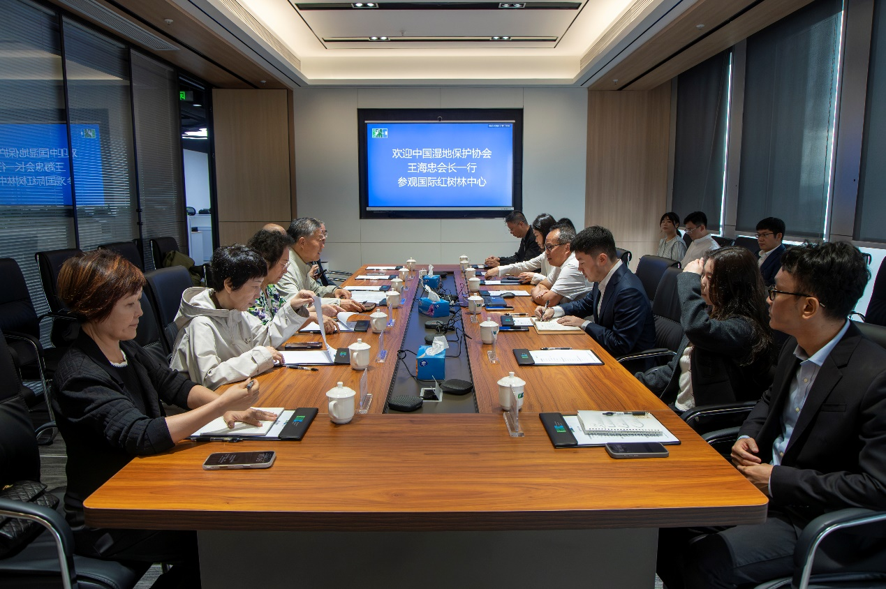 On March 4, 2025, Wang Haizhong, President of the China Wetlands Association, and his delegation visited the Interim Secretariat of the International Mangrove Center (IMC), and the two sides had in-depth exchanges on the development of the IMC and the conservation of mangroves and wetlands in China, and reached a preliminary consensus on the future direction of cooperation.